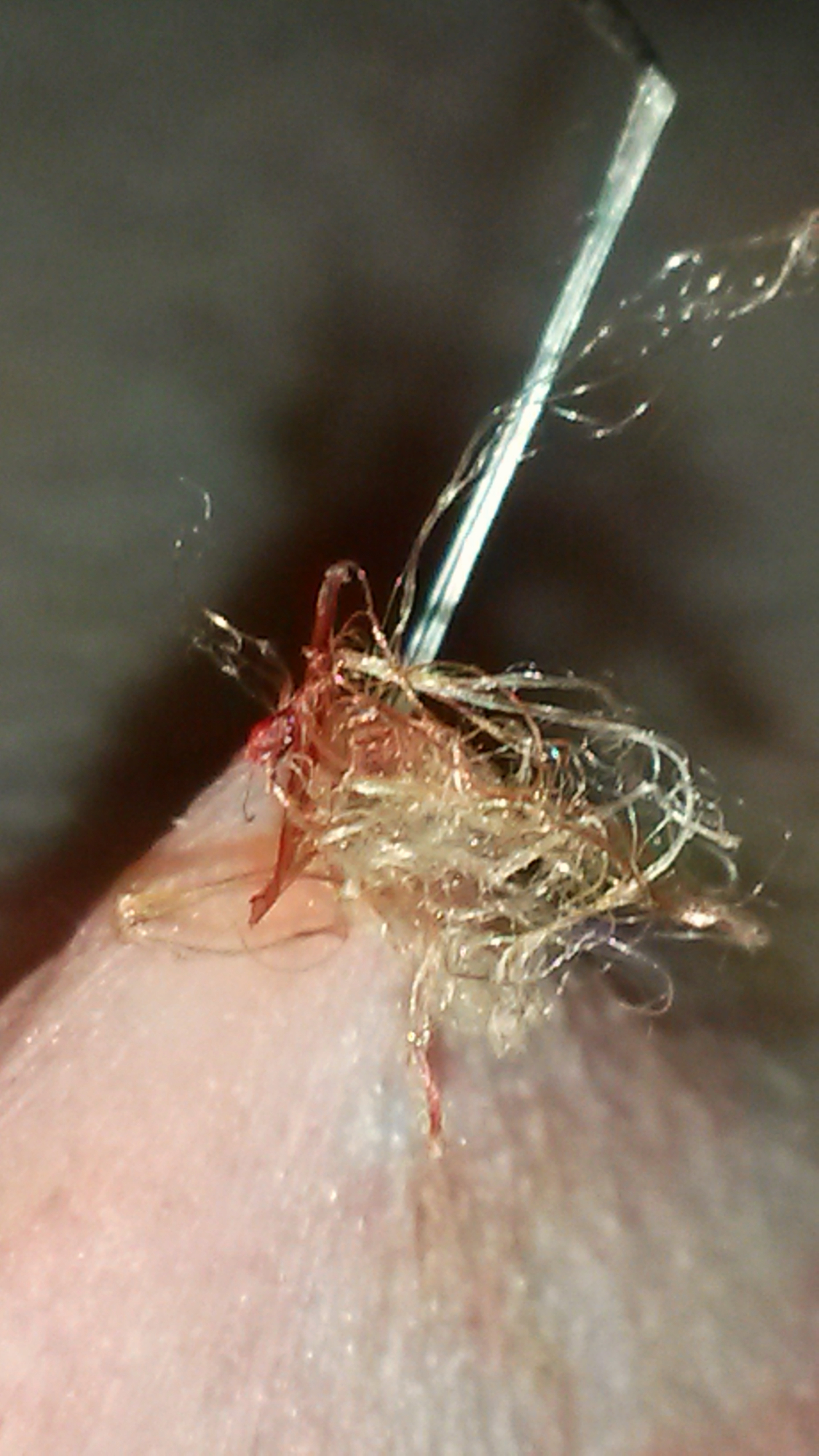 3. Get a tweezers and pull a few of the Fibers from the Cotton/Product